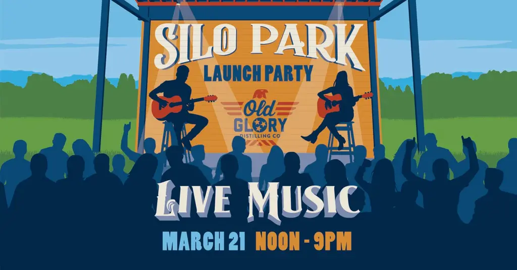The Silo Park is our open-air hangout behind Old Glory Distilling Co., connected to the restaurant and covered patio. It’s a place to relax, play a few games, enjoy good food and drinks, and spend time together. Expect fire pits, bocce ball, cornhole, plenty of seating, and a full day of live music.
